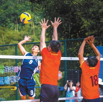11月2日,中越民间体育赛事交流活动在云南河口瑶族自治县举行。图为来自中越两国的民间气排球爱好者在这次跨国友谊赛中交流切磋。赵婧汁摄