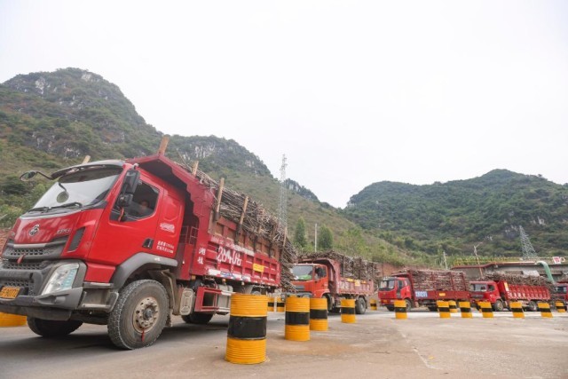 近日,在广西来宾市一糖厂,装满甘蔗的车辆正排队入厂。新华社记者 胡星宇 摄