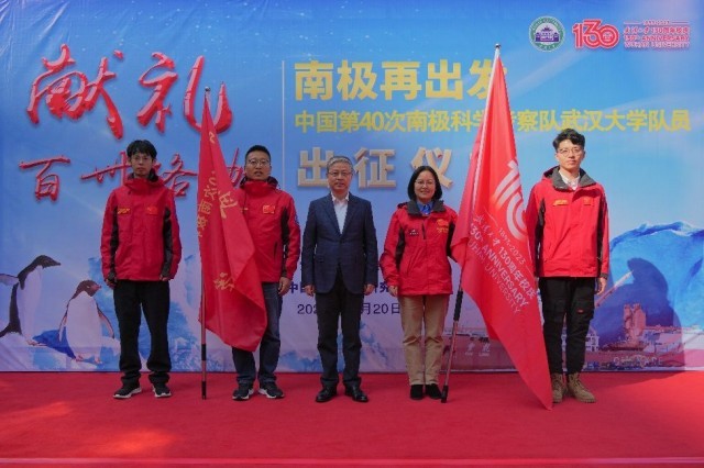 今年10月20日,李雪平、张保军、耿通、褚馨德4名武大师生在中国第40次南极科考队出征仪式现场庄重宣誓。他们分批次一路向南,随中国第40次南极科学考察队一起,执行南极海平面变化监测、南极全球导航卫星系统跟踪站建设、冰川变化监测等考察任务。