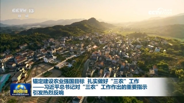 央视网消息(新闻联播):在刚刚闭幕的中央农村工作会议上,习近平总书记对做好“三农”工作作出了重要指示,明确了当前和今后一个时期“三农”工作的战略要求和主攻方向。广大干部群众表示,习近平总书记的重要指示是做好新时代新征程“三农”工作的根本遵循和行动指南,要学习运用“千万工程”经验,有力有效推进乡村全面振兴,以加快农业农村现代化更好推进中国式现代化建设。