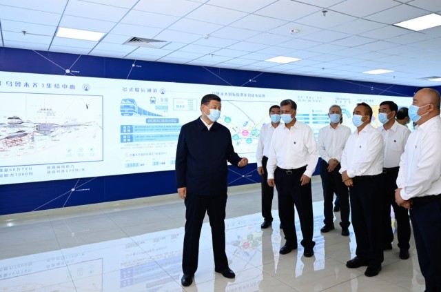 2022年7月12日下午,习近平在新疆乌鲁木齐国际陆港区考察。