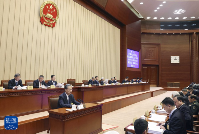 12月26日下午,十四届全国人大常委会第七次会议在北京人民大会堂举行第二次全体会议。赵乐际委员长出席会议并作全国人大常委会执法检查组关于检查种子法实施情况的报告。新华社记者 刘卫兵 摄