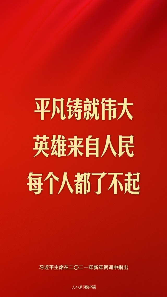 “无数平凡英雄拼搏奋斗,汇聚成新时代中国昂扬奋进的洪流。”习近平主席在新年贺词中每一次对普通人的点赞,都凝聚着心系民生的赤诚情怀,饱含着歌颂奋斗的真挚情感。