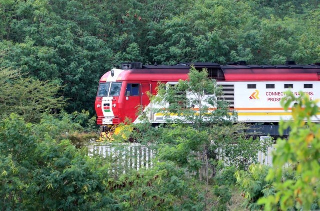 ↑2018年6月2日,列车在肯尼亚蒙内铁路上行驶。