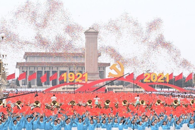 庆祝中国共产党成立100周年大会在北京天安门广场隆重举行。这是庆祝大会现场放飞气球(2021年7月1日摄)。新华社记者 李尕 摄