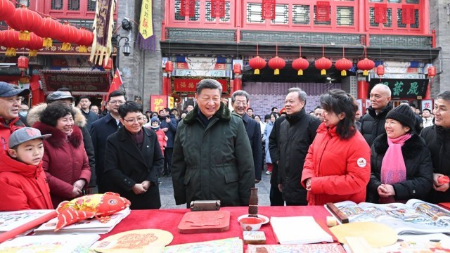 春节前夕,习近平总书记在天津看望慰问基层干部群众,看到市民和游客在欣赏传统民俗表演时喜气洋洋,感受到了浓浓的年味。