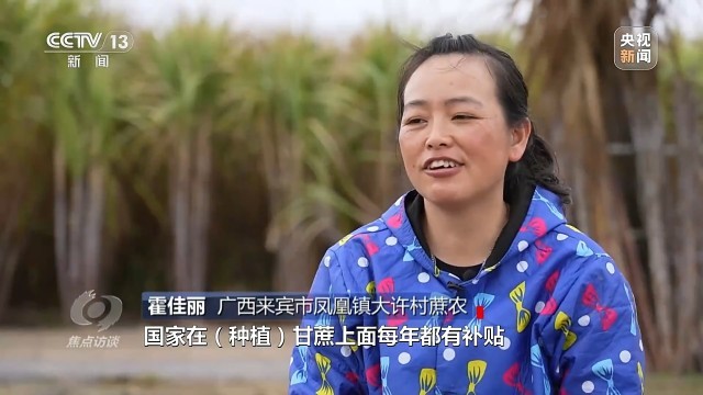 霍佳丽:“国家在(种植)甘蔗上面每年都有补贴,有甘蔗种苗的补贴,整地的机耕费也有补贴。”