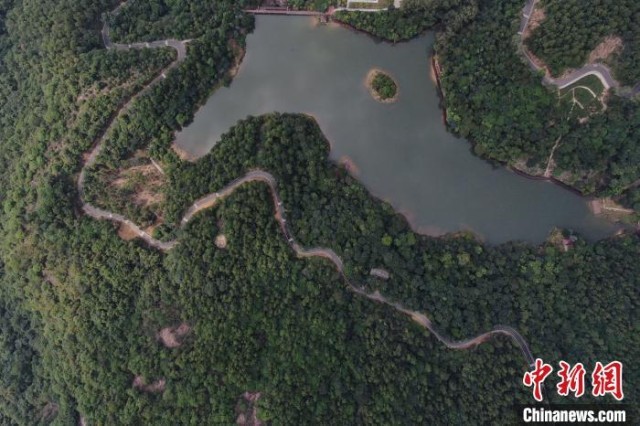 航拍镜头下的广州市白江湖森林公园。 陈楚红 摄