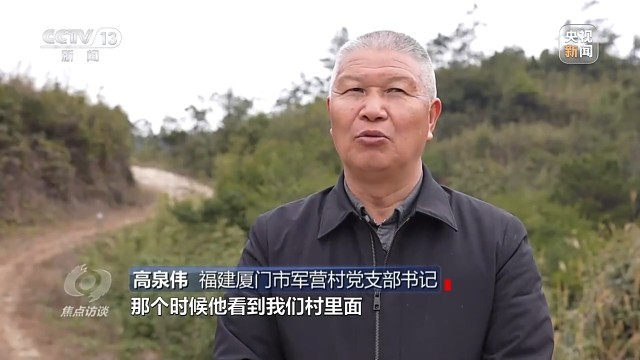 福建厦门市军营村党支部书记 高泉伟:“第一次讲‘山上戴帽山下开发’,那时候他看到我们村里树木都砍光了,连杂草也割回去当作肥料,其实是叫我们管好山管好水;第二次叫我们既要种茶种果,也别忘了森林绿化。”