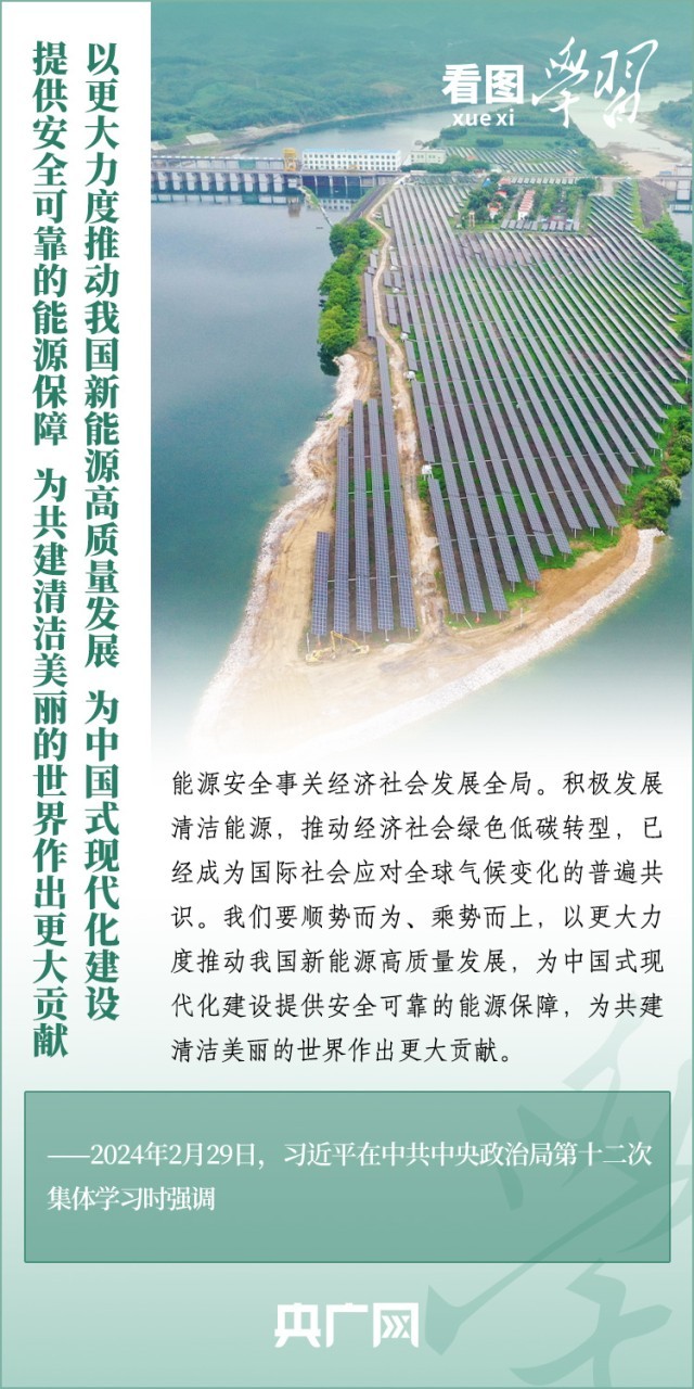 能源安全事关经济社会发展全局。2月29日,习近平总书记在中共中央政治局第十二次集体学习时强调,我们要顺势而为、乘势而上,以更大力度推动我国新能源高质量发展,为中国式现代化建设提供安全可靠的能源保障,为共建清洁美丽的世界作出更大贡献。一起来学习!