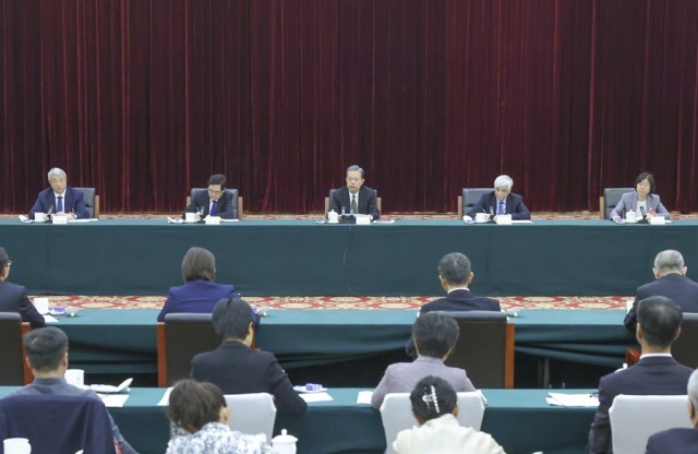 3月6日,中共中央政治局常委、全国政协主席王沪宁参加全国政协十四届二次会议少数民族界委员联组会。新华社记者 申宏 摄