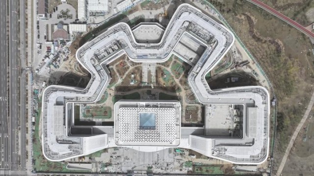 这是位于雄安新区启动区内的中国卫星网络集团有限公司总部大楼建设现场(2024年3月28日摄,无人机照片)。作为首家注册落户雄安新区的中央企业,该项目建设正在按照节点稳步推进,目前正在开展装饰装修及小市政、绿化收尾工作。