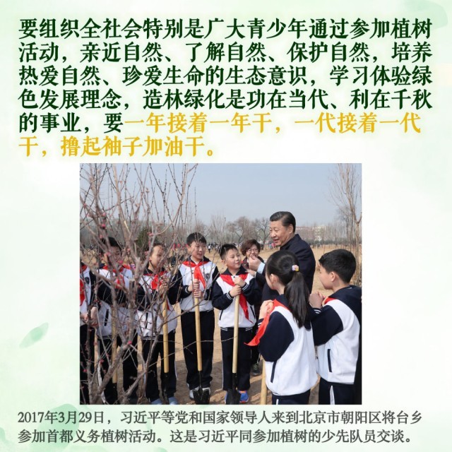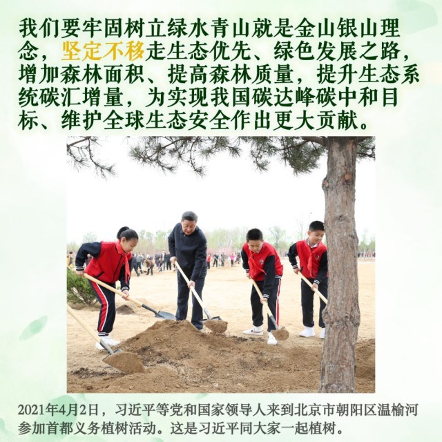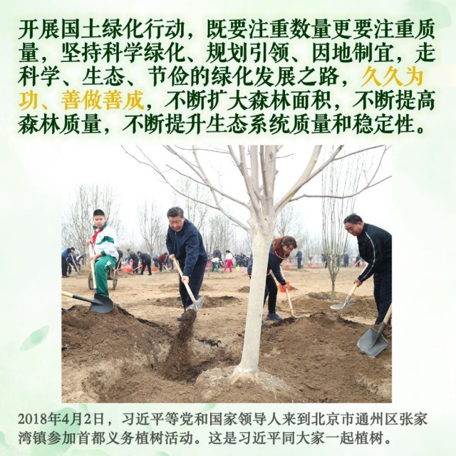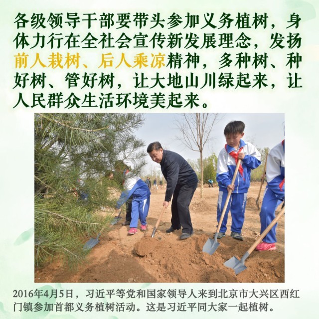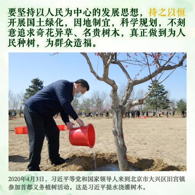 2013年4月,习近平当选中共中央总书记后首次参加首都义务植树活动时就强调: