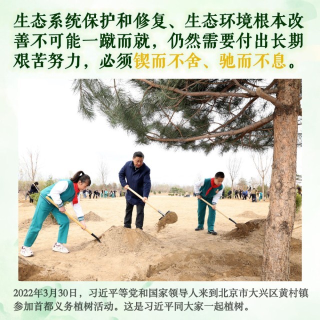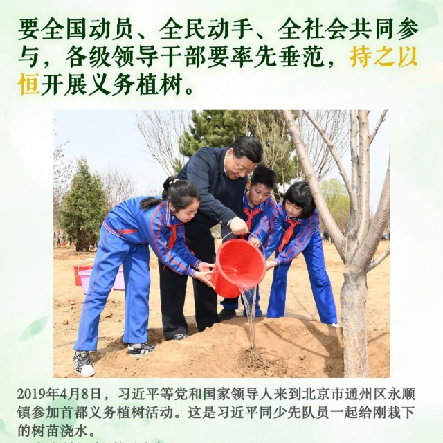 身体力行,持之以恒。此后的11个春天,无论晴雨,总书记都抽出时间加入植绿队伍,并对国土绿化事业提出殷殷嘱托。坚持,是12年来总书记反复强调的关键内涵。