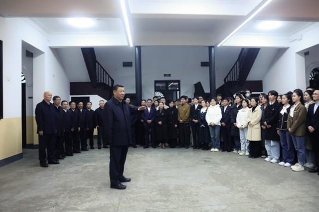 今年3月18日,绵绵春雨中,习近平总书记来到湖南第一师范学院(城南书院校区)考察调研。