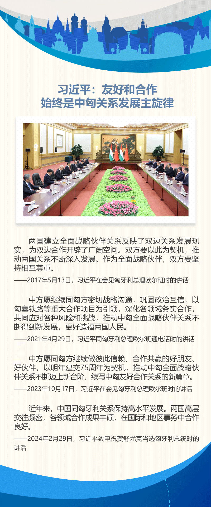 中国与匈牙利的传统友谊源远流长。建交75年来,双方在国际事务中相互支持、密切配合。近年来,在两国领导人的战略引领下,中匈关系始终保持高水平发展。双方政治互信不断加深,互利合作成果丰硕,人文交流丰富多彩,在国际和地区事务中协作良好。