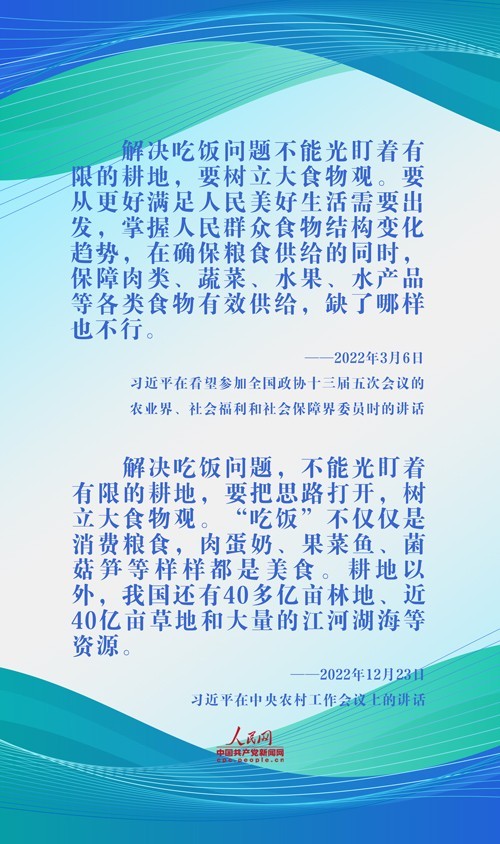 早在福建宁德工作期间,习近平就在《走一条发展大农业的路子》一文中提出:“……过去讲的粮食只是狭隘地理解为就是水稻、小麦、玉米等禾本科作物。现在讲的粮食即食物,大粮食观念替代了以粮为纲的旧观念。”