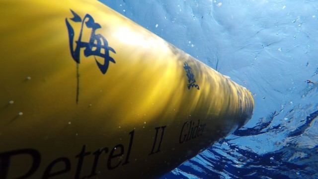 “海燕”系列水下滑翔机入海开展实验。(天津大学供图)