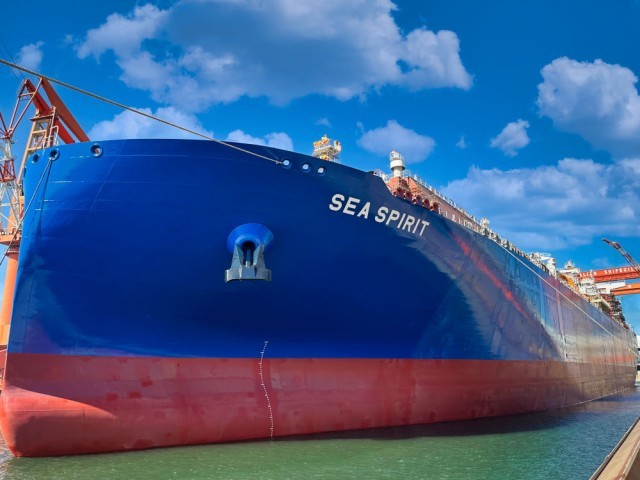 5月27日,我国自主研发设计的17.5万立方米液化天然气(LNG)运输船在中国船舶集团大连船舶重工集团有限公司出坞。(中国船舶大连造船供图)