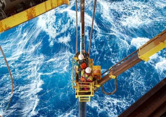 “深海一号”二期工程工人作业现场。(中国海油供图)