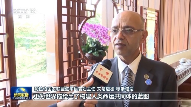 阿拉伯国家联盟驻华代表处主任 艾哈迈德·穆斯塔法:习主席的讲话不仅是纪念和平共处五项原则,更为世界描绘出了构建人类命运共同体的蓝图。中方提出的倡议有助于各国加强合作,克服各种艰难险阻和全球性挑战。