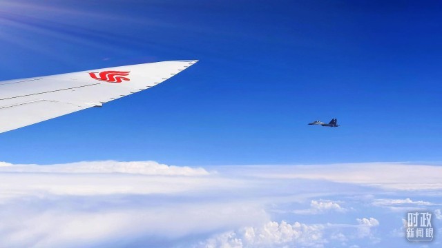 △护航的哈萨克斯坦空军战机。(总台央视记者李铮拍摄)