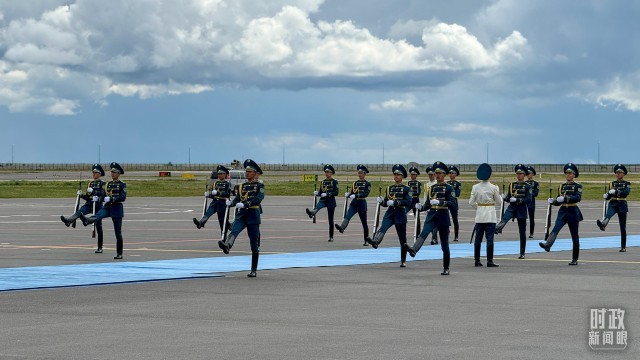 仲夏的阿斯塔纳,生机盎然,辽阔壮美。停机坪上,天蓝色的地毯,热情的欢迎人群,传递着哈萨克斯坦对习主席的真诚相迎。