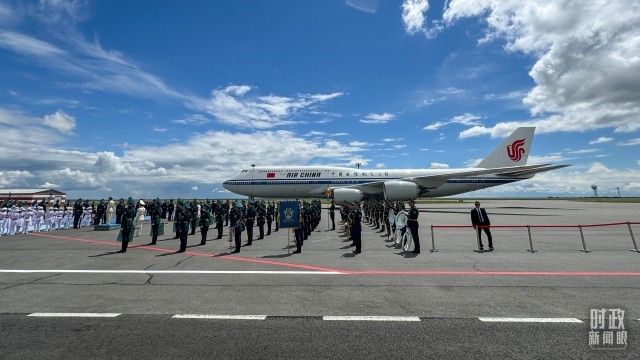 △习主席乘专机抵达阿斯塔纳。(总台央视记者郁振一拍摄)