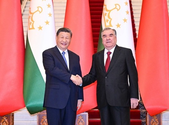刚才,我同拉赫蒙总统举行了内容丰富、成果丰硕的会谈。我们共同签署了联合声明,宣布建立新时代中塔全面战略合作伙伴关系,一致决定在更高起点携手构建世代友好、休戚与共、互利共赢的中塔命运共同体。我们见证交换了20余份政府间、部门间文件,涉及经贸、互联互通、矿产、安全、人文等领域合作。中塔关系拥有了新定位,开辟了两国合作新前景。
