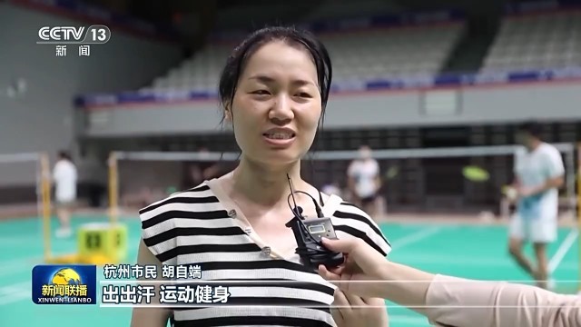 杭州市民 胡自端:出出汗,运动健身,一个也可以解压,第二个也可以强身健体,第三个还能交到很多志同道合的好朋友,我觉得非常好。全民健身也是越来越流行的一个趋势。