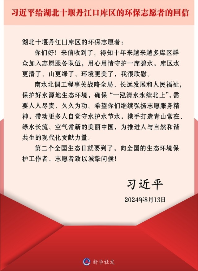 习近平给湖北十堰丹江口库区的环保志愿者的回信