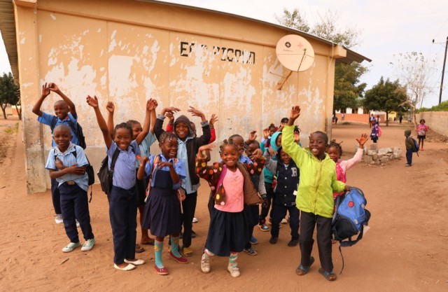 2023年7月25日,莫桑比克马普托省皮科科村学校的孩子们站在装有中国援助的卫星电视接收天线的房屋前。“万村通”项目旨在为非洲1万个村庄接入卫星数字电视信号。截至2023年12月,中国援非“万村通”项目已顺利完成在非洲20个国家的建设工作,覆盖非洲9512个村庄,直接受益家庭超过19万户。