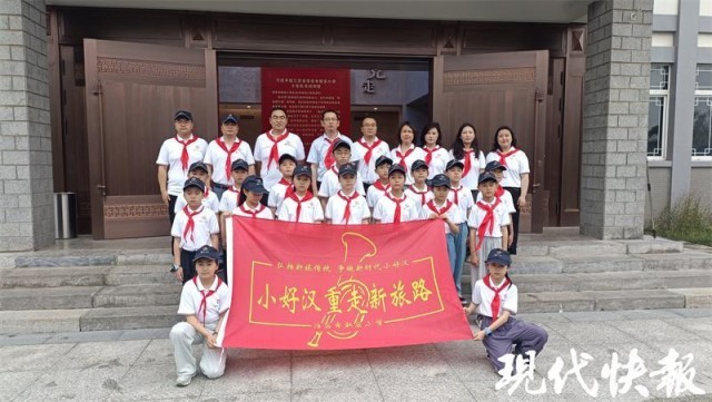 为深入贯彻落实总书记重要回信精神,江苏省淮安市新安小学近年来充分运用“新安旅行团”红色资源,暑假组织学生开展“小好汉重走新旅路”红色寻访活动,更好地发挥红色文化立德树人、培根铸魂的作用。“同学们打卡红色场馆,讲述红色故事,在丰富多彩的红色研学中树立从小刻苦学习,长大建设伟大祖国的坚定信念。”江苏省淮安市新安小学副校长王正祥说。