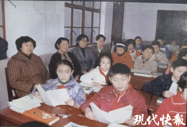 斯霞(左侧二)老师在朱征(前排中)班级听课