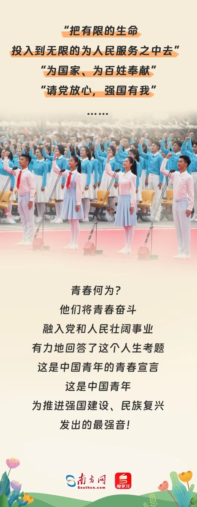 时代的每一次前行,都闪耀着青年奋勇拼搏的身影。一代又一代的中国青年满怀对祖国和人民的赤子之心,积极投身党领导的伟大事业,为人民战斗、为祖国献身、为幸福生活奋斗,用行动奋力践行着自己的青春宣言。