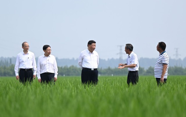 2022年6月8日上午,习近平在四川眉山市东坡区太和镇永丰村高标准水稻种植基地考察,了解水稻试验育种和种植推广情况。习近平强调:推进农业现代化,既要靠农业专家,也要靠广大农民。要加强现代农业科技推广应用和技术培训,把种粮大户组织起来,积极发展绿色农业、生态农业、高效农业。我们有信心、有底气把中国人的饭碗牢牢端在自己手中。