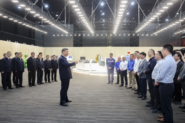 2024年10月17日下午,中共中央总书记、国家主席、中央军委主席习近平在安徽合肥滨湖科学城,察看近年来安徽省重大科技创新成果集中展示,同现场科研人员和企业负责人亲切交流。