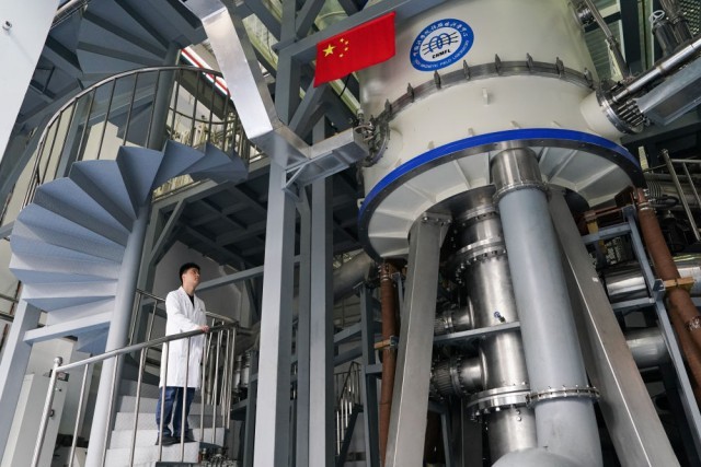 这是在安徽合肥科学岛拍摄的“人造太阳”——全超导托卡马克核聚变实验装置(EAST)(2021年4月13日摄)。