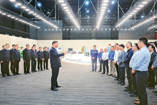 2024年10月17日至18日,中共中央总书记、国家主席、中央军委主席习近平在安徽考察。这是17日下午,习近平在合肥滨湖科学城考察时,同现场科研人员和企业负责人亲切交流。 新华社记者 鞠鹏/摄