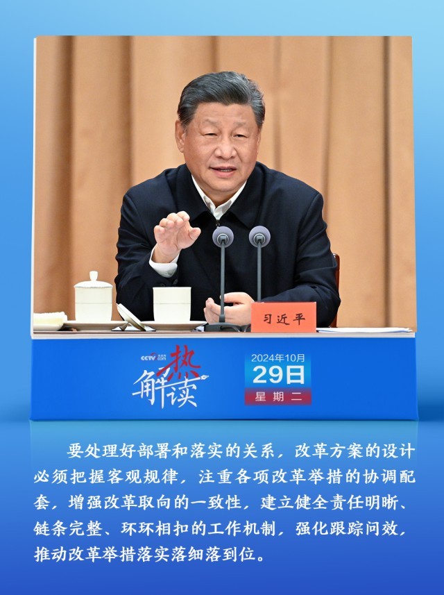 10月29日,省部级主要领导干部学习贯彻党的二十届三中全会精神专题研讨班开班。在开班式上,习近平总书记明确提出要“处理好部署和落实的关系”,“建立健全责任明晰、链条完整、环环相扣的工作机制,强化跟踪问效,推动改革举措落实落细落到位”。