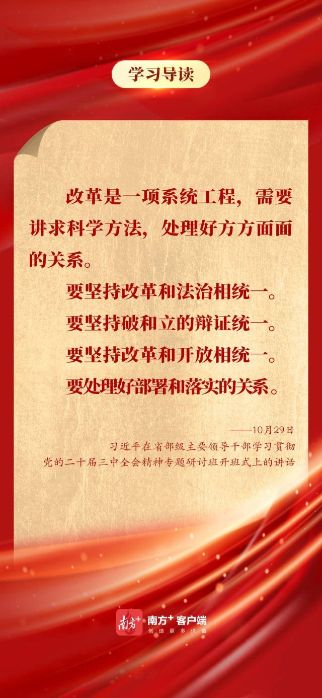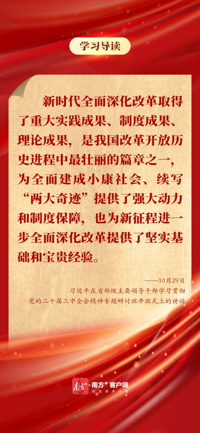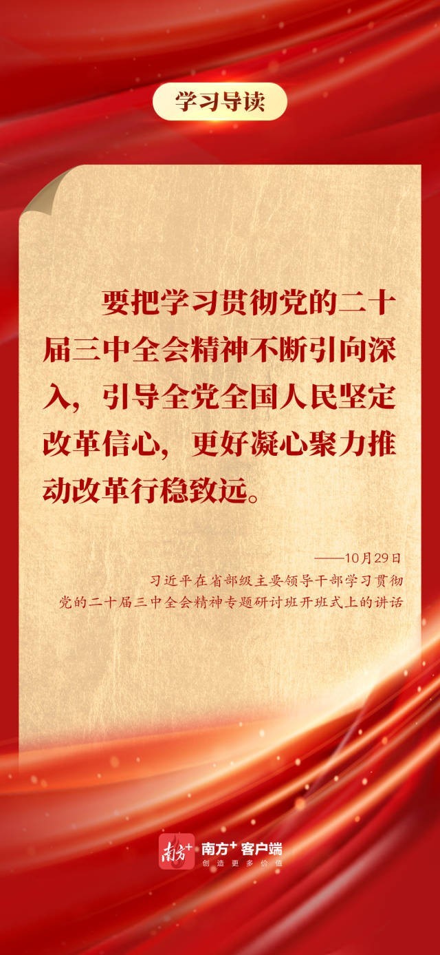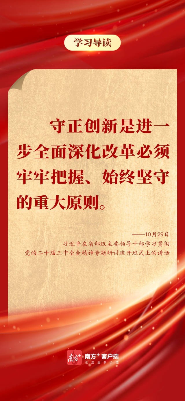 习近平总书记在开班式上发表重要讲话,深刻总结新时代全面深化改革取得的历史性成就,深刻阐明进一步全面深化改革的一系列重大理论和实践问题,对坚持守正创新、讲求科学方法、营造良好氛围提出明确要求,立意高远、思想深邃、论述精辟、内涵丰富,具有很强的政治性、理论性、针对性、指导性,对于我们全面准确理解党的二十届三中全会精神,在新征程上推动改革行稳致远、推动各项改革举措精准落地见效,具有十分重要的意义。