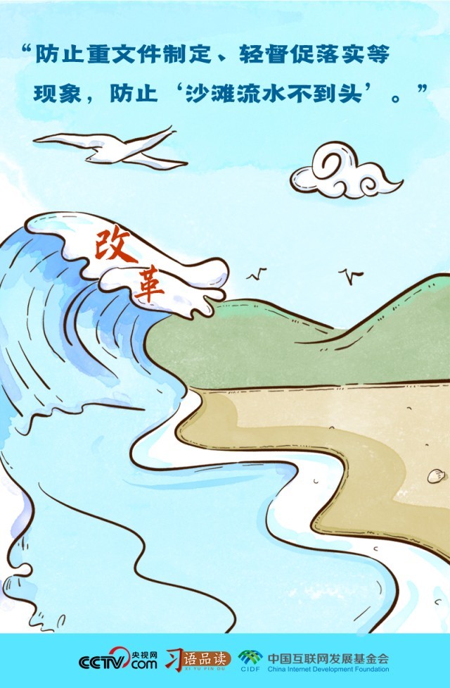 “要建立健全责任明晰、链条完整、环环相扣的工作机制,强化跟踪问效,推动改革举措落实落细落到位,防止重文件制定、轻督促落实等现象,防止‘沙滩流水不到头’。”