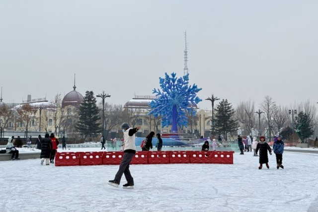 2025年1月17日,哈尔滨市民在位于南岗体育场的公益冰场滑冰。新华社记者 杨思琪 摄
