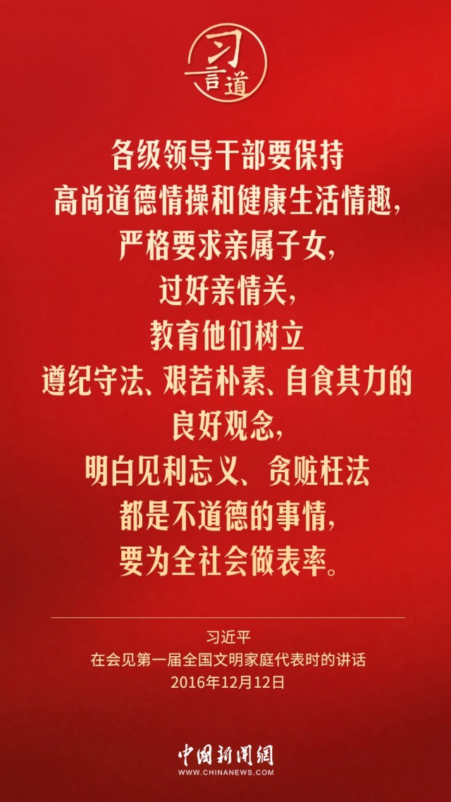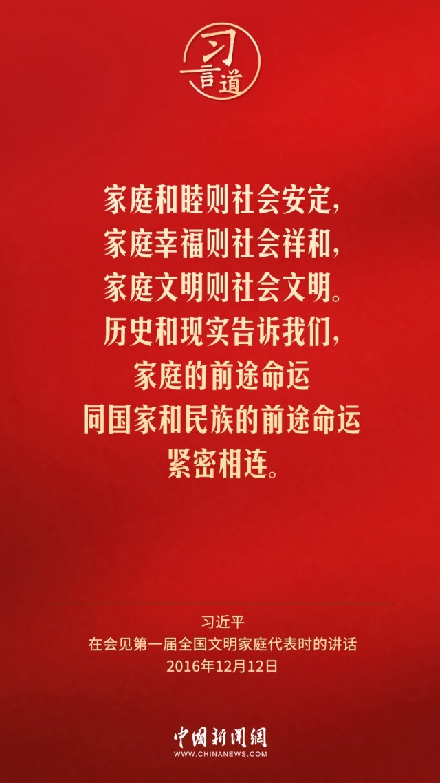 2月1日出版的《求是》杂志发表中共中央总书记、国家主席、中央军委主席习近平2016年12月12日在会见第一届全国文明家庭代表时讲话的一部分《注重家庭,注重家教,注重家风》。