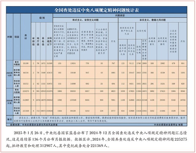 2024年,全国纪检监察机关共接收信访举报356.3万件次,处置问题线索217.5万件,立案87.7万件,处分88.9万人,运用“四种形态”批评教育和处理214.8万人次……