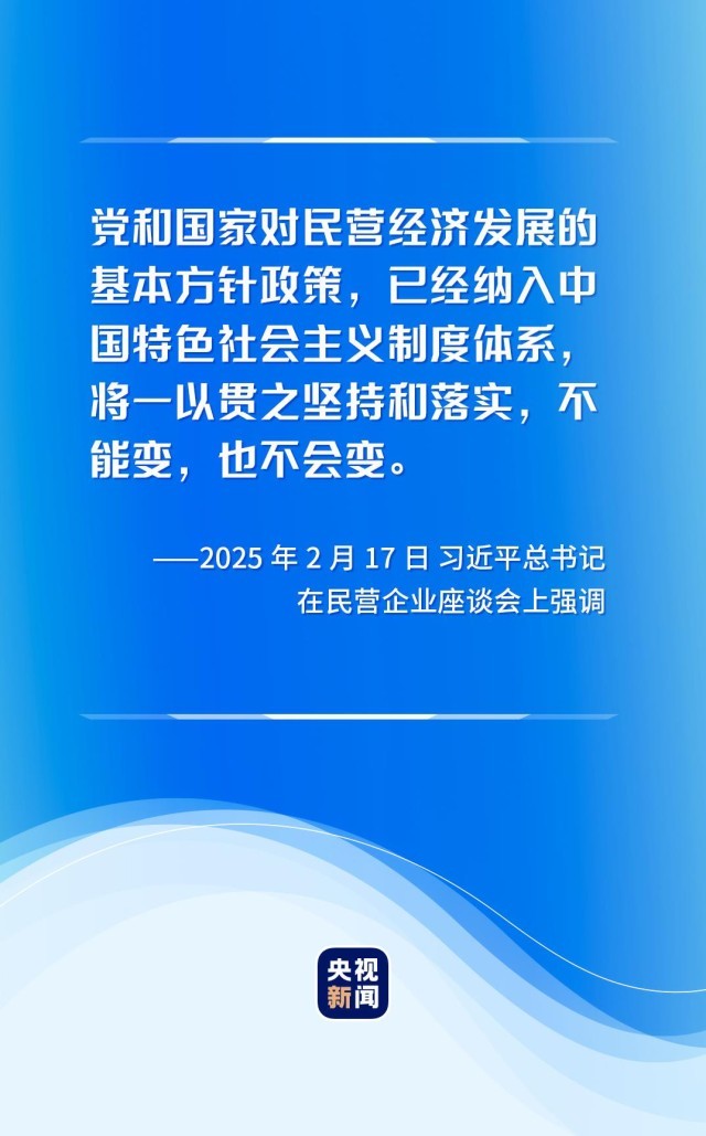 这次座谈会上,习近平总书记再次强调:“几十年来,关于对民营经济在改革开放和社会主义现代化建设事业中地位和作用的认识、党和国家对民营经济发展的方针政策,我们党理论和实践是一脉相承、与时俱进的。”“党和国家坚持和完善社会主义基本经济制度,毫不动摇巩固和发展公有制经济,毫不动摇鼓励、支持、引导非公有制经济发展”。
