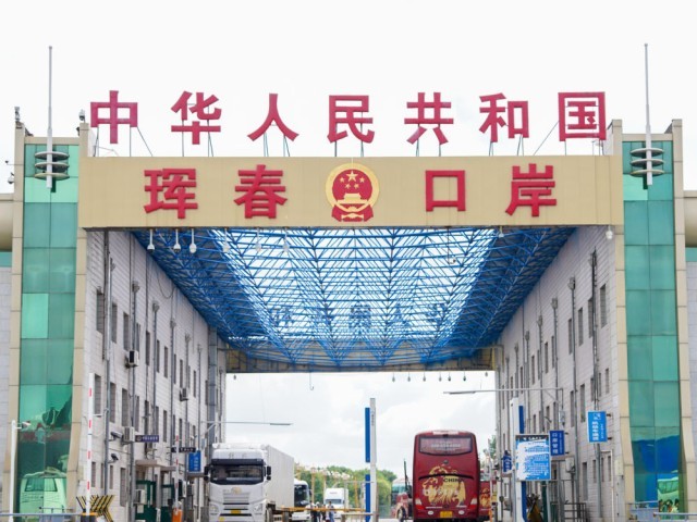 2024年8月14日,游客乘坐跨境大巴通过吉林省延边朝鲜族自治州珲春口岸跨境旅游。珲春市位于中俄朝三国交界处,是吉林省唯一对俄口岸城市,近年来,凭借独特的区位优势和通关优势,珲春口岸成为吉林省对外开放的重要窗口。便捷的交通条件为跨境旅游提供了极大便利,2024年珲春口岸出入境游客达66.7万人次。