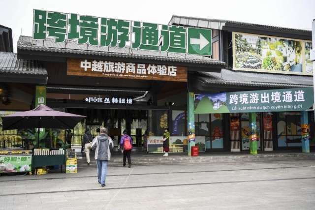 2024年12月15日拍摄的中越德天(板约)瀑布跨境旅游合作区中国一侧景观。2024年10月15日,中越德天(板约)瀑布跨境旅游合作区正式运营,这也是中国首个跨境旅游合作区。合作区内,中国德天瀑布与越南板约瀑布相连,构成亚洲第一大跨国瀑布。中方景区打造具有两国文化元素的“中越风情街”和“中越跨境街”;越方一侧则有越南特色美食和民族文化体验。合作区实施预约组团、组团限量、限时跨境、团进团出、游览线路限定的管理模式,持合法有效证件的中越民众可预约报名,现场办理出入境通行证,通过便捷的通关手续穿越中越边境,一览异国风情。
