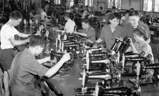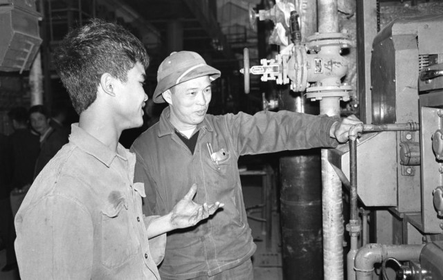 1970年,越南实习生在上海东方红缝纫机厂学习装配技术。