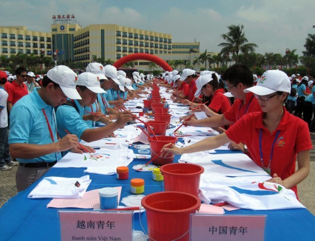 2010年8月27日,中越青年在广西北海市海滨公园参加“用友谊共绘美好未来”中越千名青年大型彩绘活动。